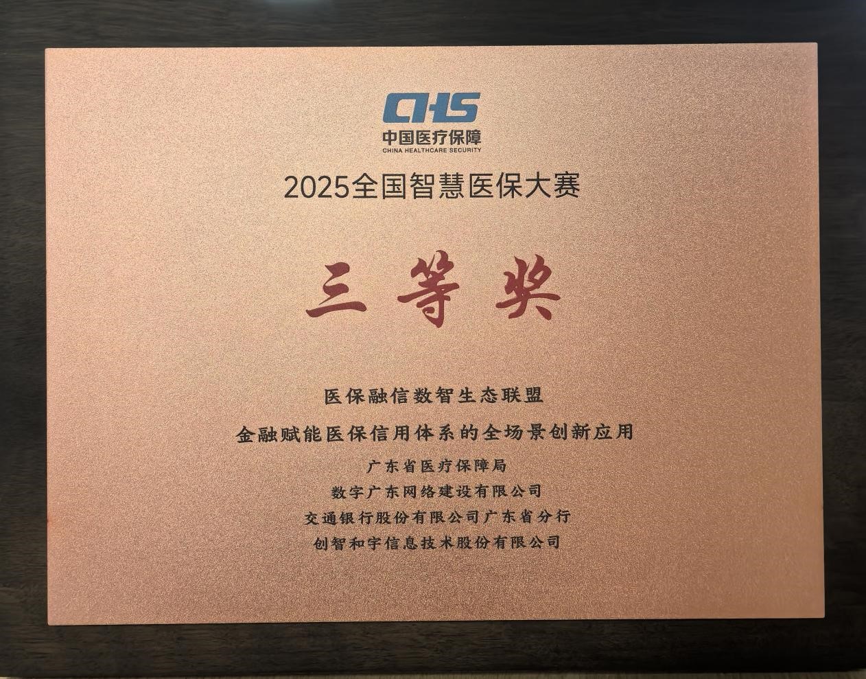 12月8日,由国家医疗保障局主办的2025年全国智慧医保大赛颁奖典礼在上海举行。在广东省医疗保障局的指导下,数字广东公司携手合作伙伴提报的“金融赋能医保信用体系的全场景创新应用”案例获大赛三等奖。